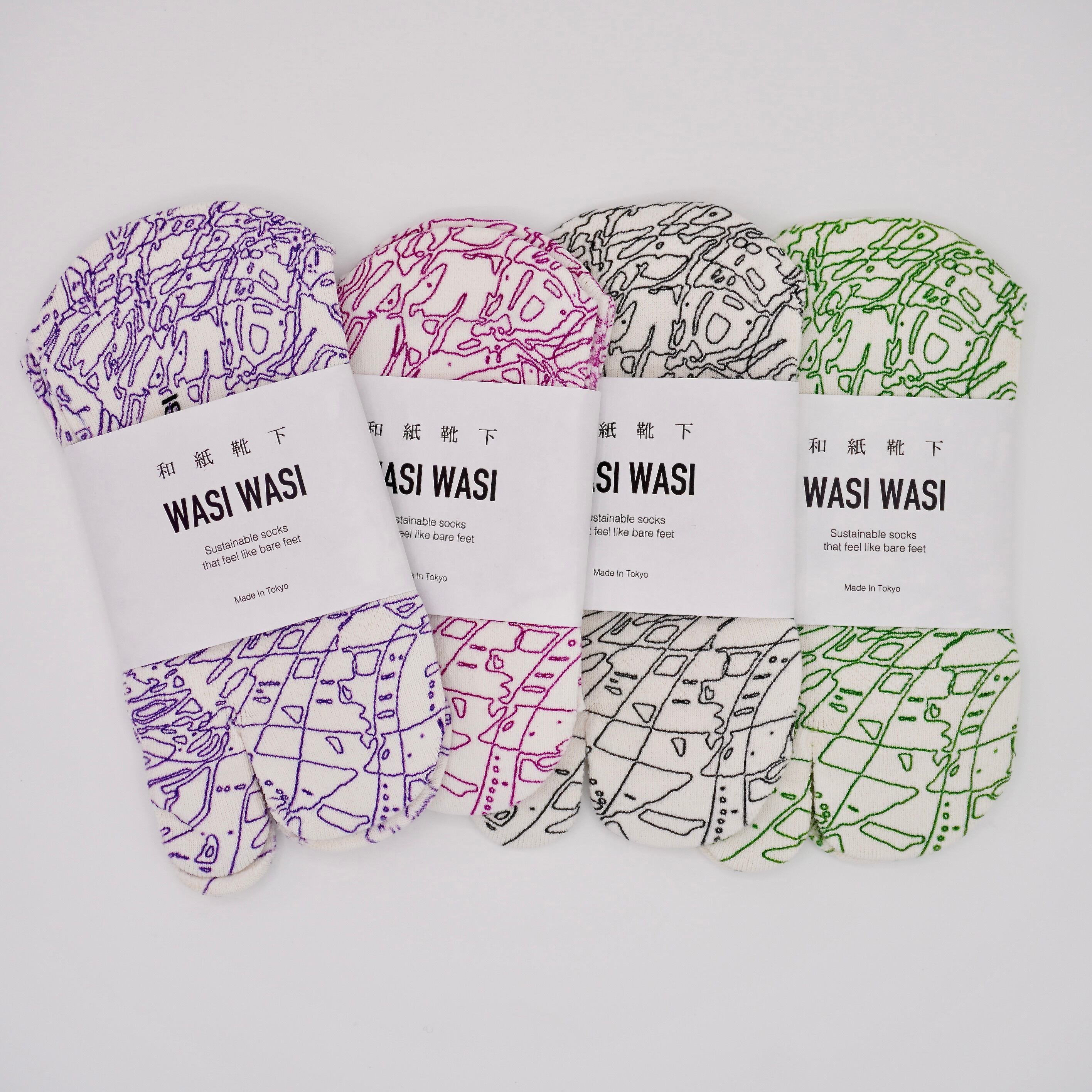 足袋和紙プリントソックス ラインアート柄 紫