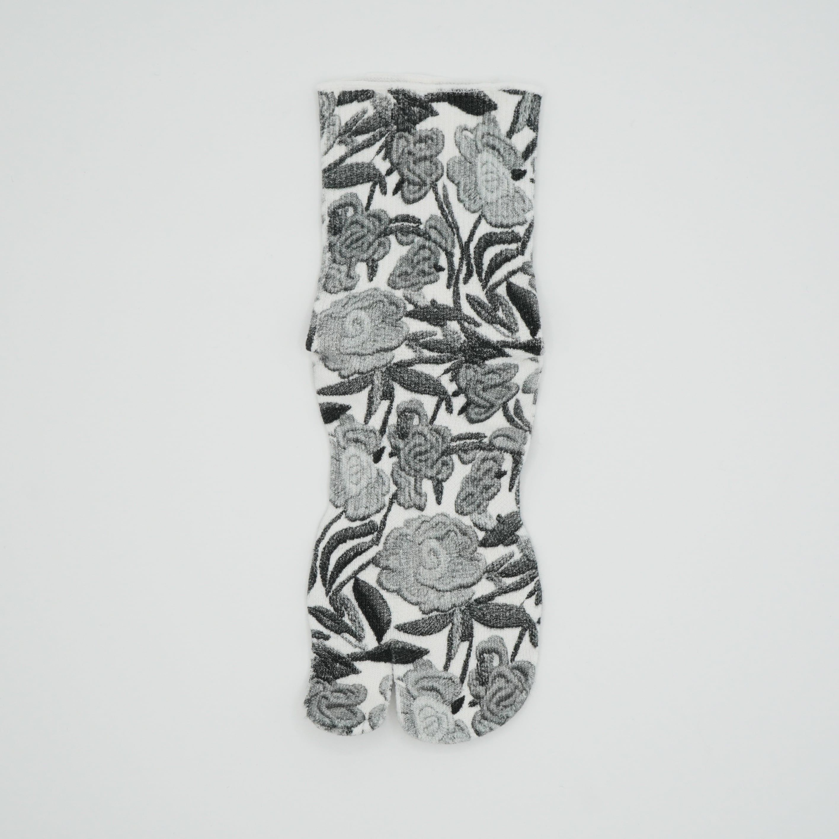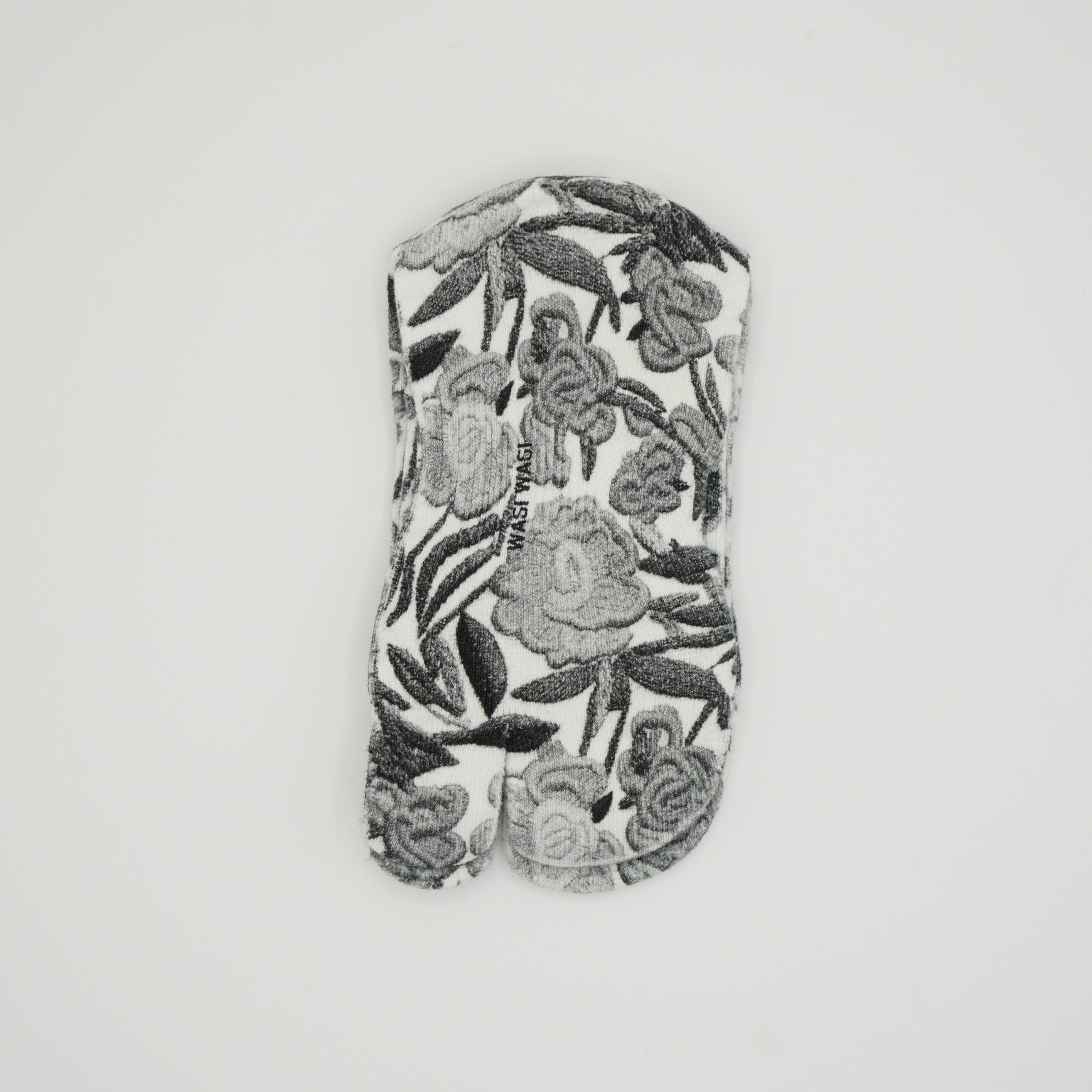 足袋和紙プリントソックス 刺繍花柄 白黒